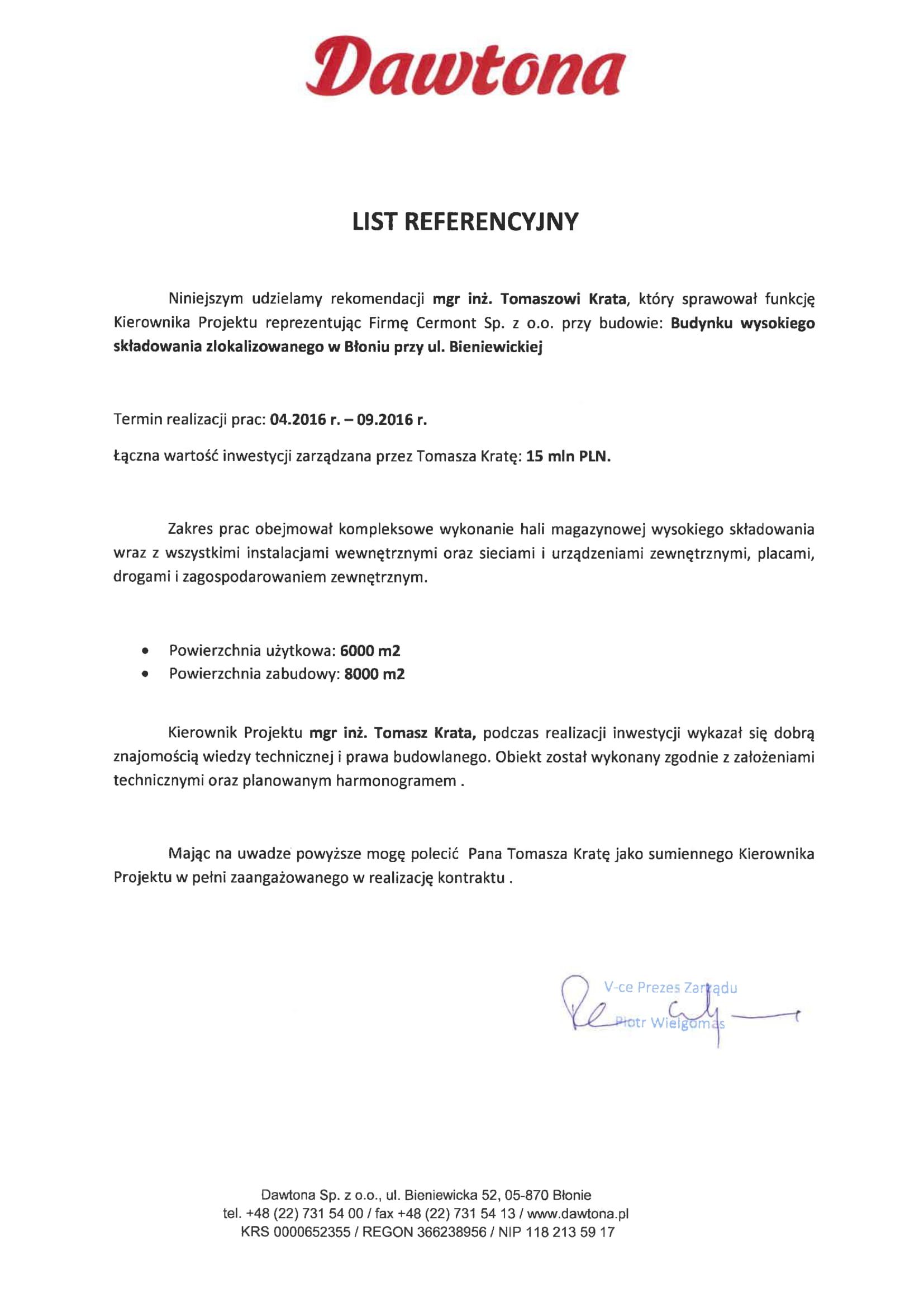 KBP Budownictwo Sp. z o.o. 05-807 Żółwin ul. Ptasia 16 NIP 5342662014, KRS 0001024445, REGON 524709595www.kbpbudownictwo.pl